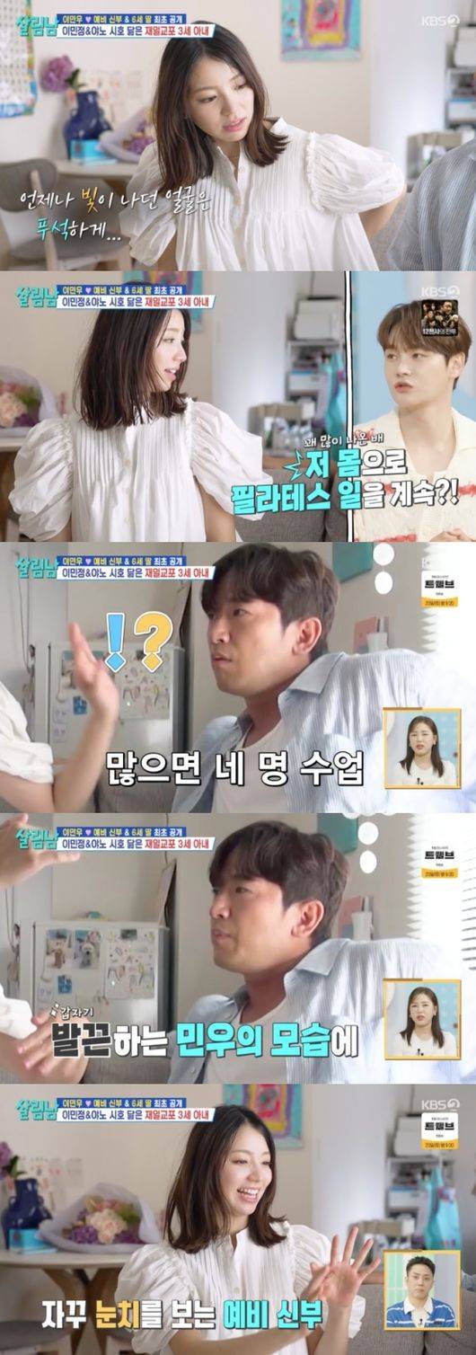 예비 신부는 임신 중인 몸으로도 4명씩 수업을 한다고 말해 이민우를 버럭하게 만들었다.