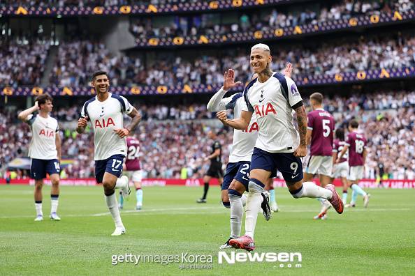 전반 10분 토트넘의 선제골이 터졌다. 쿠두스의 낮고 빠른 크로스를 히샬리송이 하프 발리로 처리해 골망을 갈랐다.