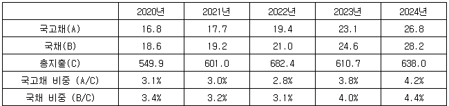 [표] 총지출 대비 국채 및 국고채 이자비용 비중