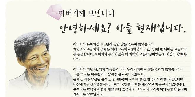 故 이용마 MBC 기자의 6주기를 앞두고 이용마 기자의 아들 현재씨가 아버지에게 편지를 썼다.