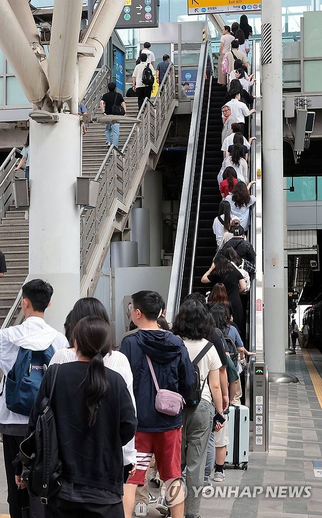 (서울=연합뉴스) 김인철 기자 = 광복절 연휴 마지막 날인 17일 서울역에 도착한 시민들이 발걸음을 옮기고 있다. 2025.8.17