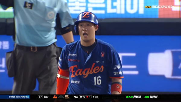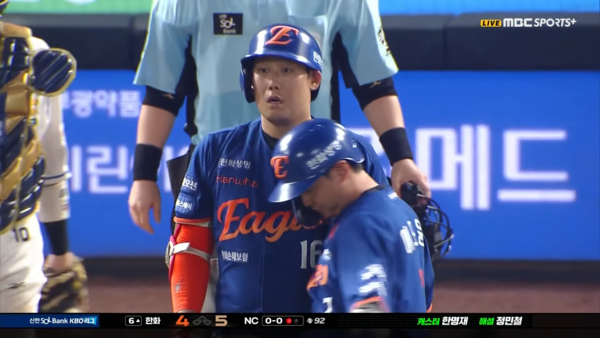 그런데 이날 화제가 된 장면은 따로 있었다. 6회 초에 나온 벤치 클리어링이 바로 그것. NC 선발 투수 신민혁이 선두 타자 하주석을 헛스윙 삼진 처리했다. 그런데 헛스윙 직후 신민혁이 반사적으로 포효하다 보니 타자를 향해 곧바로 소리를 지르는 모양새가 됐다.