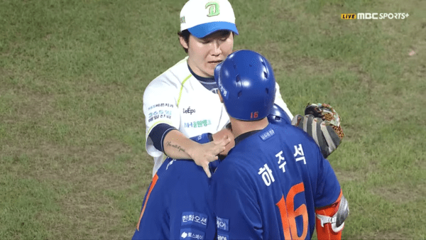 이에 분노한 하주석이 마운드 쪽으로 향하며 호통을 치기 시작했다. 양 팀 선수들이 벤치에서 쏟아져 나왔다. 다행히 신민혁이 바로 사과하고 한화 선수들도 하주석을 말리면서 상황은 금방 종료됐다.