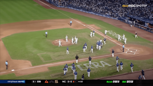 그런데 직전에 하주석이 벤치 클리어링을 유발하면서 이야기가 달라졌다. 셀러브레이션에 분노해 투수에게 호통을 쳐놓고, 정작 자기 팀이 비슷한 셀러브레이션을 한 모양새가 된 것.