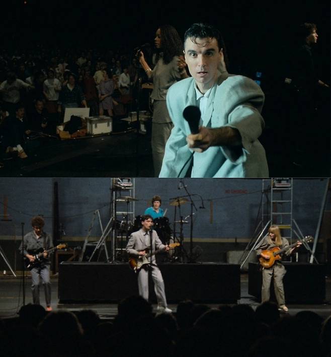 1980년대의 필수 음악 감상 기기였던 카세트 테이프 플레이어를 무대로 가져온 데이비드 번이 재생 버튼을 누르면서 영화는 함께 시작된다. 아니나 다를까 처음을 알리는 노래는 다름 아닌 'Psycho Killer'다. 어쿠스틱 기타 한 대 들고 열정적으로 노래하는 데이비드에 이어 악기와 멤버들이 하나 둘씩 차례로 등장하면서 어느새 판타지스 극장 공간은 일련의 음악인들로 가득 채워졌다.