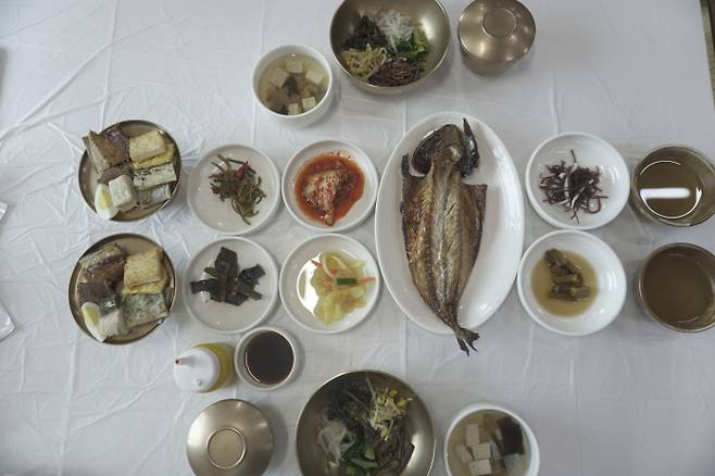 이날 방문한 곳은 '길풍식당'. 헛제사밥을 주문하니 제수용 놋그릇에 정갈한 찬이 나왔다. 헛제사밥이 무엇인지 물으니 "가짜 제사밥이라 생각하면 된다"는 답이 돌아왔다. 여기에 팁이 있다면 여기에 안동 간고등어를 추가해 먹는 것이다. 간고등어가 중심을 잡으니 더욱 그럴듯한 상차림이 됐다.
