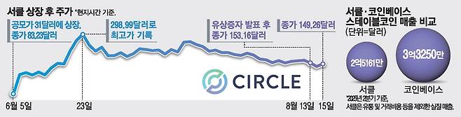 한편 서클은 지난 6월 상장 이후 한때 298.99달러까지 상승했으나, 최근 한 달간 35.99% 급락하면서 149.26달러까지 내렸다.