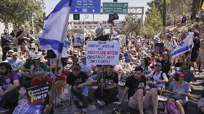 이들은 주말 뒤 첫 평일인 이날 텔아비브와 예루살렘을 잇는 1번 국도 등 주요 고속도로를 점거하고 차로 위에 불을 피우며 시위를 벌였습니다.