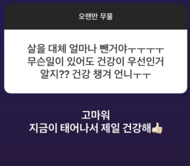한 팬이 "살을 얼마나 뺀 거냐, 건강이 우선인 거 알지?"라고 묻자, 이수현은 "고마워. 지금이 태어나서 제일 건강해"라며 환한 이모티콘을 더해 긍정적인 답변을 남겼다.