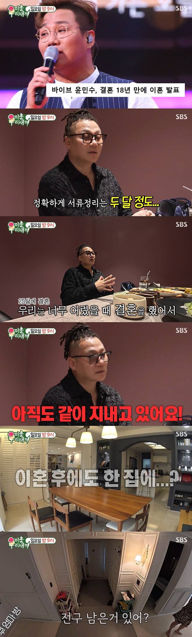 윤민수는 "이혼 기사가 난 건 작년이다. 정확하게 서류 정리가 된 건 두 달 정도 밖에 안 됐다"라고 고백했다.
