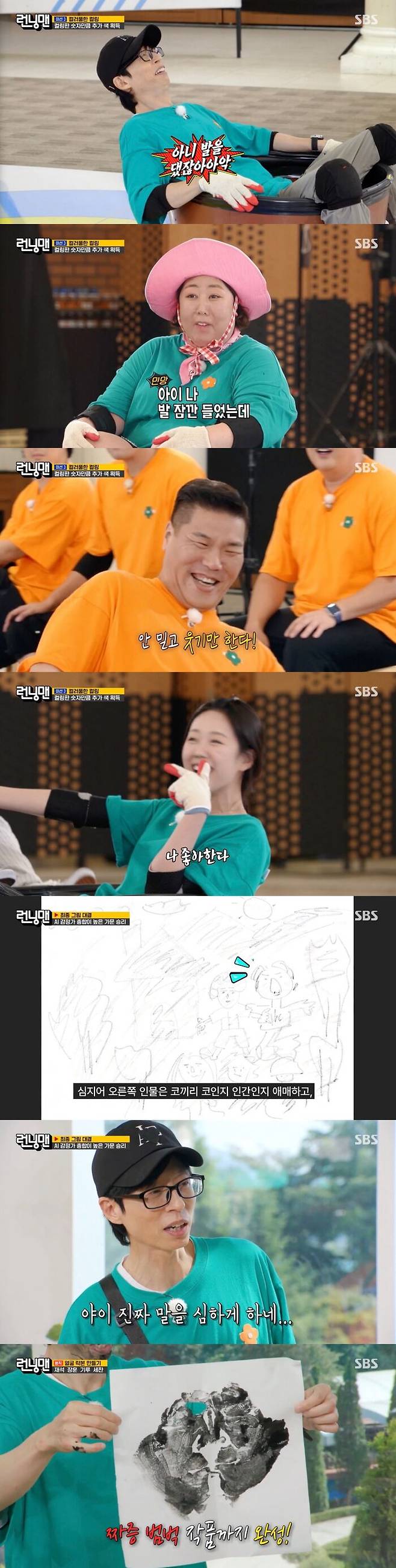 양 팀은 최선을 다해 그림을 그렸다. 그리고 신기루는 발에 물감을 묻혀서 찍어내는 과감한 방식으로 눈길을 끌었다. 이에 신기루는 "저는 철학적인 걸 좋아해서"라고 도구를 가리지 않는 자신의 방식에 자랑스러운 모습을 보였다.