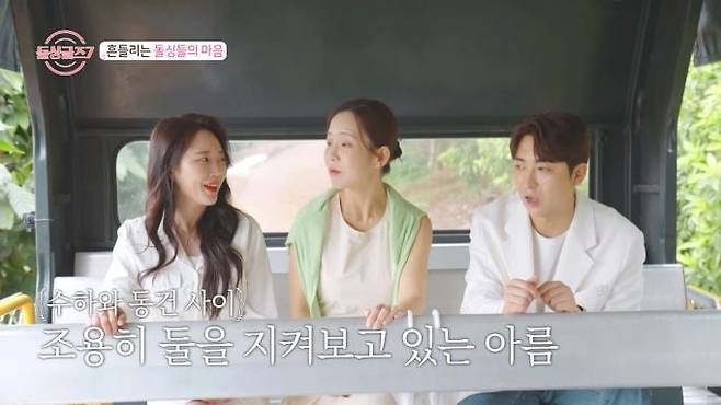 유일한 '다대일 데이트'에 들어간 동건-수하-아름은 과일농장으로 떠났다. 차로 이동하던 중, 수하는 적극적으로 동건에게 플러팅했다. 동건의 "가족들의 명절 문화에 대해 어떻게 생각해?"라는 질문에 수하는 "결혼 당시 두 집의 음식을 해야 했는데도 난 여유로웠다"면서 "명절이 그립다~"라고 쐐기박기용 답을 했다. 반면 아름은 "상황에 맞게, 시댁의 의견을 따르겠다"고 조심스런 태도를 보였다. 수하는 다시 "명절은 민족 행사인데, 어른들에게 예는 갖춰야 한다고 생각한다"고 해 아름과 묘한 신경전을 벌였다. 묘한 기류 속, 과일농장에 도착한 세 사람은 용과 등 과일을 직접 따보면서 즐거운 시간을 보냈고, 이후 여러 과일들을 맛보며 두런두런 대화를 나눴다. 이때 수하는 동건에게 "네가 (내 마음을) 잘 모르는 것 같아서 일부러 오늘 너에게 더 표현했다. 오늘부터 시작이라고 생각해"라고 직진을 선언했다. 이를 들은 아름은 당황한 표정을 감추지 못했다. 잠시 후, 아름은 동건과 1:1로 대화할 기회가 생기자, "어제의 우연한 데이트로 네게 감정이 생겼다. 이런 적은 처음"이라고 덤덤하게 자신의 마음을 고백해 동건을 웃게 했다.