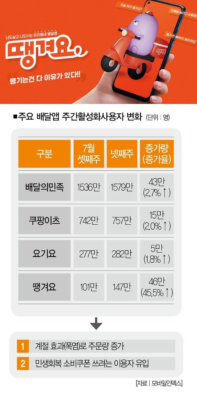 배달앱 '땡겨요' 더 당길 수 있을까 : 민생회복 소비쿠폰 수혜 後
