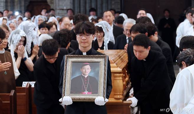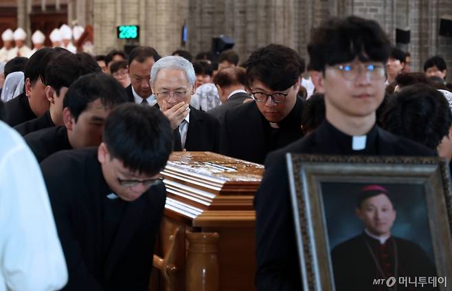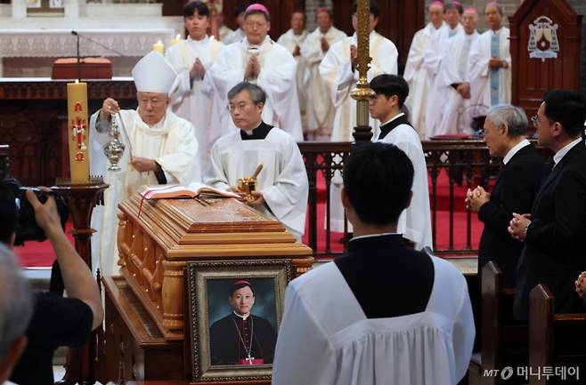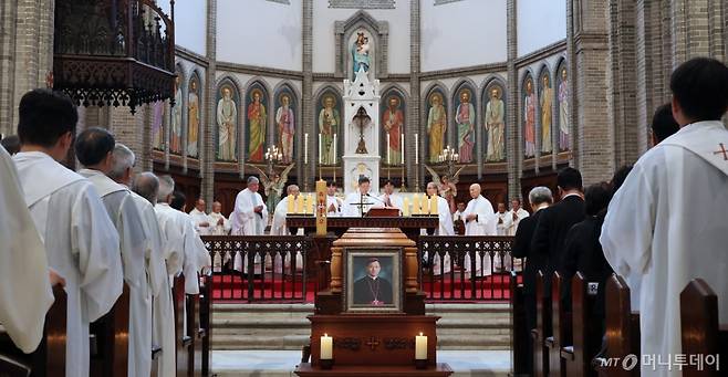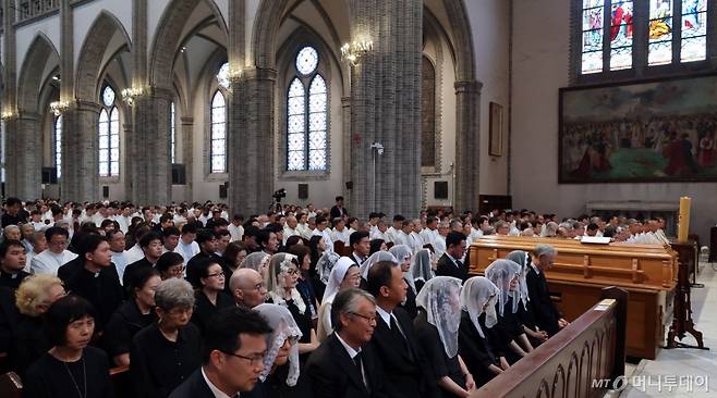 천주교 서울대교구 故 유경촌 주교 장례 미사가 18일 서울 중구 명동대성당에서 엄수되고 있다.