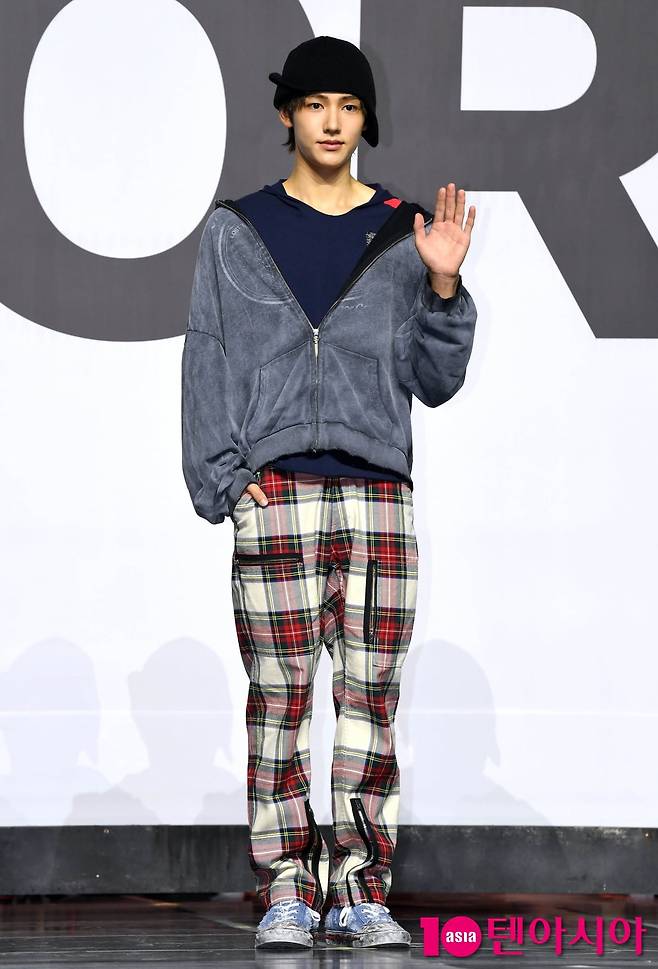 그룹 코르티스(CORTIS/마틴, 제임스, 주훈, 성현, 건호) 성현이 18일 서울 용산구 블루스퀘어에서 열린 앨범 'COLOR OUTSIDE THE LINES' 데뷔 쇼케이스에 참석해 포즈를 취하고 있다.