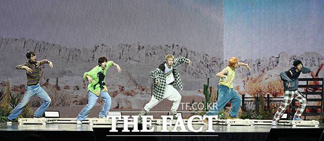 [더팩트ㅣ서예원 기자] 그룹 코르티스(CORTIS)가 18일 오후 서울 용산구 블루스퀘어 SOL 트래블홀에서 열린 데뷔 앨범 'COLOR OUTSIDE THE LINES(컬러 아웃사이드 더 라인스)' 발매 기념 쇼케이스에 참석해 타이틀곡 'What You Want(왓 유 원트)' 무대를 펼치고 있다.