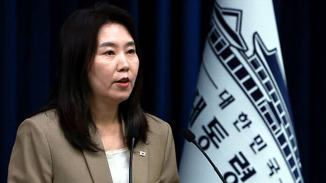 ▲ 강유정 대통령실 대변인이 18일 서울 용산 대통령실 청사에서 이날 열린 국가안전보장회의(NSC) 및 국무회의 등 현안 브리핑을 하고 있다.