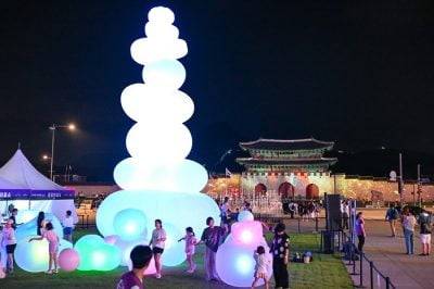 광화문과 외벽 80m를 거대한 캔버스로 활용해 펼쳐지는 화려한 미디어파사드와 남녀노소 누구나 즐길 수 있는 다채로운 체험 프로그램이 진행되고 있는 ‘80개의 빛, 하나된 우리’는 8월 23일까지 열린다.