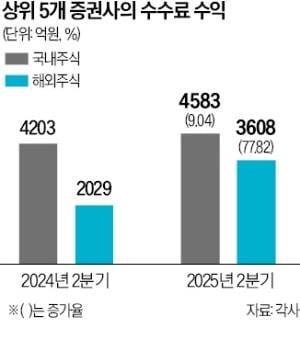 한 증권사 관계자는 "해외 주식 수수료 수익이 실적의 핵심 축으로 떠오르고 있다"며 "이 추세라면 올해 안에 해외 수수료 수익이 국내를 넘어설 가능성이 크다"고 말했다.