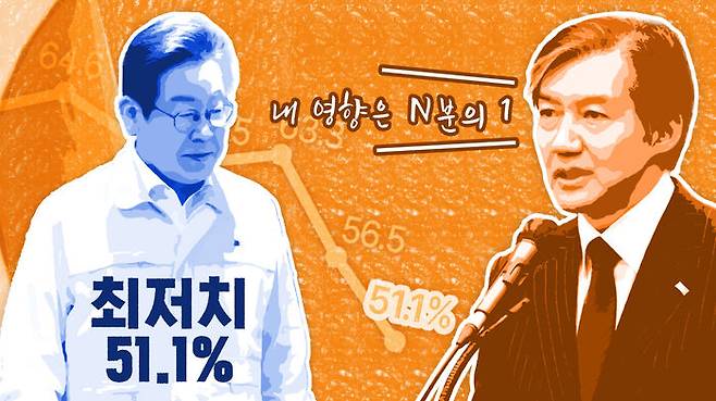 이재명 대통령의 국정 수행에 대한 지지도가 51.1%로 내려앉았다는 여론조사 결과가 오늘 공개됐습니다. 여론조사기관 리얼미터 조사 결과(이하 여론조사에 대한 자세한 내용은 중앙선거여론조사심의위 홈페이지를 참고할 수 있습니다)를 보면, 대통령 취임 뒤 60%대를 구가해오던 국정 수행 지지도가 지난주 50%대로 내려앉은 뒤, 더 하락해 50%대 초반의 최저치를 기록했습니다.