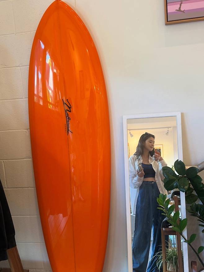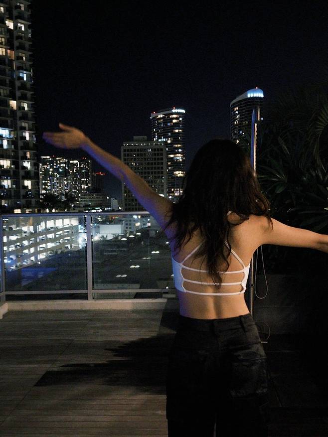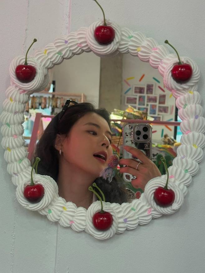 밝은 오렌지색 서프보드 옆에서 거울셀카를 찍거나, 야경이 아름다운 루프탑에서 두 팔을 활짝 펼치고 도시의 빛을 만끽하는 모습, 독특한 디자인의 체리 거울 앞에서 소품을 활용하는 등 다양한 무드가 담겼다. 또 한 장에서는 푸른색 크롭탑과 와이드 데님 팬츠를 완벽하게 소화하며 시원한 음료를 즐기고 있어 이선빈 특유의 건강미와 세련된 패션 감각이 돋보인다.