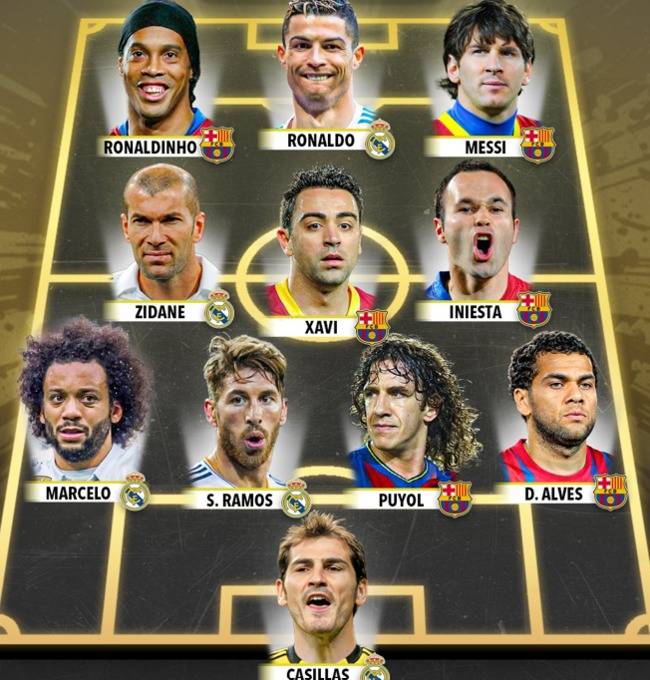바르셀로나와 레알 마드리드 출신 선수들이 명단을 독식했다.