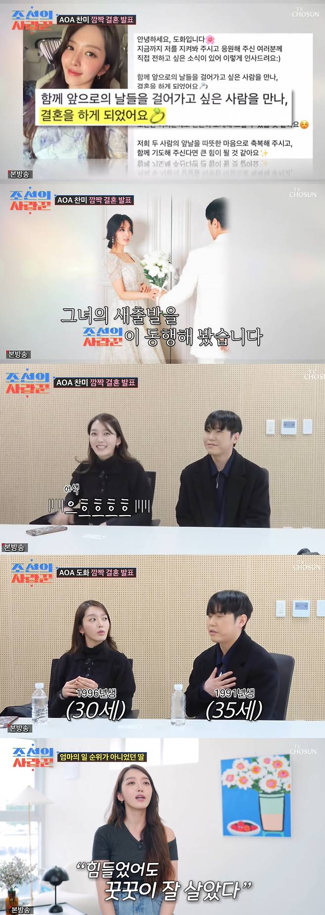 18일 방송된 TV CHOSUN '조선의 사랑꾼'에서는 AOA 찬미의 행복한 결혼식이 그려졌다.