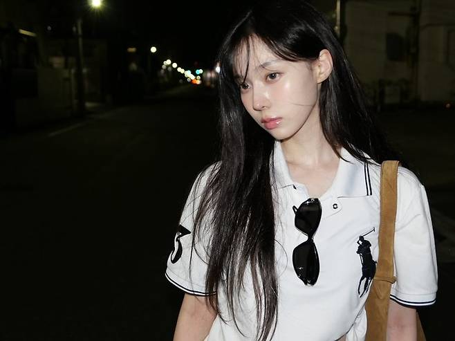 사진 속 윈터는 화이트 폴로 셔츠를 크롭 스타일로 연출하고, 자연스럽게 흘러내린 긴 흑발로 매혹적인 무드를 자아냈다. 청순한 메이크업과 조명에 비친 또렷한 얼굴선이 조화를 이루며 시선을 끈다.