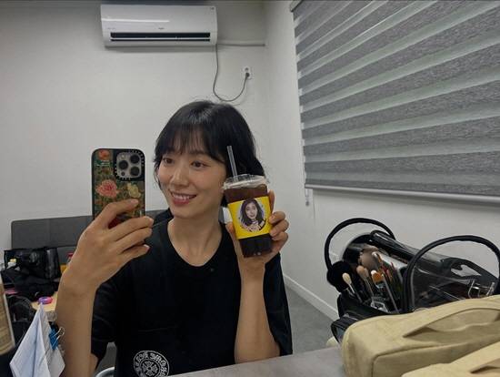 공개된 사진 속 박신혜는 엄지원이 촬영장에 보내준 커피차 앞에서 하트 포즈를 취하며 환한 미소를 짓고 있다.