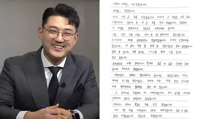 그러면서 "'아무도 모르고 넘어갈 수도 있지 않을까'라는 생각도 했다. 하지만 점점 커져만 가는 죄책감을 막을 수는 없었다. 이로 인해 피해를 보았거나 상처받은 분들을 위해 모든 방법을 동원해 최선의 노력을 하겠다. 그 일환으로 50일간 유튜브와 방송 활동에서 발생한 수익은 환원할 수 있는 방법을 찾아 책임 있게 조치하겠다. 앞으로 내 채널과 모든 방송 활동을 접고 무기한 반성과 자숙의 시간을 갖겠다. 모든 분께 진심으로 사죄드린다"며 글을 마무리했다.