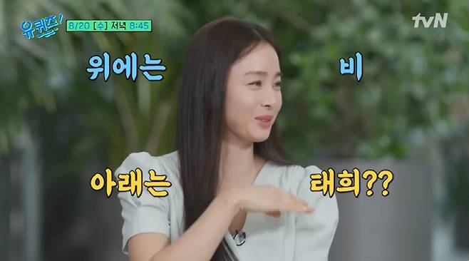 지난 18일 tvN '유퀴즈온더블럭' 측은 "할리우드 배우가 된 김태희가 처음으로 밝히는! 비와의 연애썰부터 '엄마 태희'의 이야기까지"라며 선공개 했다.