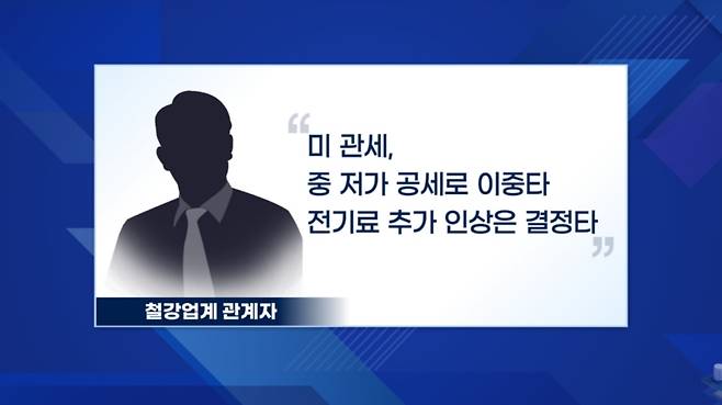 특히 막대한 전력을 쓰는 철강사들은 미국의 관세와 중국의 저가 공세에 이어 전기료 추가 인상이라는 삼중고에 직면하게 됐습니다.