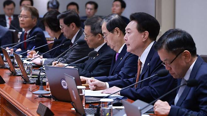 7명 앞에서 선 윤 대통령이 비상계엄을 통보하자 한덕수 총리가 나섰습니다. "이렇게 하면 안 된다"며 부속실을 통해 국무위원 4명을 더 부른 것입니다. 밤 10시가 넘어서야 11명이 모여 정족수를 채웠고, 이 자리에서 윤 대통령은 본인의 뜻을 알리고 비상계엄을 선포했습니다.