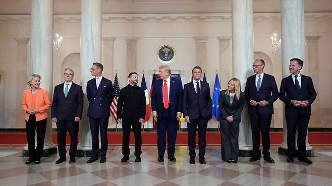 이들 정상들은 이날 트럼프 대통령이 러시아에 치우친 협상안을 강요하지 않도록 함께 백악관을 방문해 젤렌스키 우크라이나 대통령을 지원했습니다.