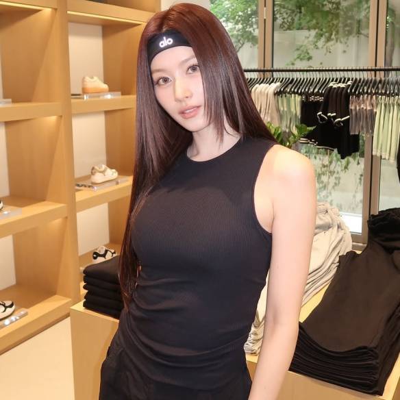 운동할 땐 이렇게! 이게 바로 힙한 운동복의 정석이죠. 슬리브리스와 헤어밴드까지 매치한 손나은, 사나의 힙한 애슬레저 룩을 참고해 보세요.