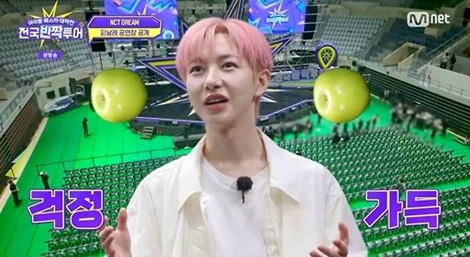 19일 밤 Mnet '아이돌 페스타 대작전: 전국반짝투어' 2회에서는 NCT DREAM 마크, 런쥔, 제노, 해찬, 재민, 천러, 지성이 경북 안동을 찾아 사과 판매원으로 고군분투하는 모습이 그려졌다.