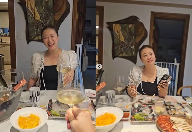 두 사람은 와인잔을 부딪히며 건배를 나누는 모습으로 달달한 부부 케미를 자랑했다. 푸짐하게 차려진 음식과 환한 미소 속에서 오랜 부부 생활에도 여전히 신혼 같은 애정을 드러내 눈길을 끌었다.