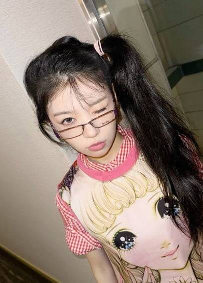 (‘오타쿠 스타일링’을 한 아일릿 모카. /사진=아일릿 공식 SNS)