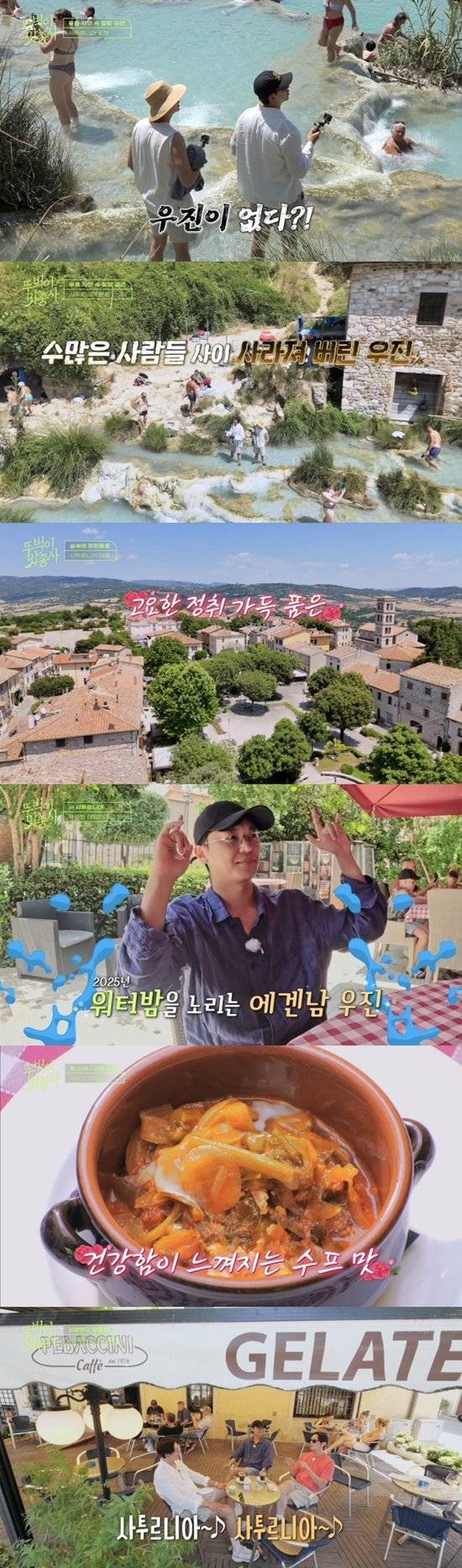21일 오후 방송되는 채널S와 SK브로드밴드 공동 제작 ‘뚜벅이 맛총사’에서는 피렌체 근교 사투르니아에서 펼쳐지는 웃음과 긴장의 힐링 여행기가 공개된다. 로마 시대부터 3천 년 동안 사랑받아온 천혜의 비경, 사투르니아 온천으로 향한 권율, 연우진, 이정신은 에메랄드빛 온천수에 발을 담그며 잠시 여유를 만끽한다. 그러나 잠시 후, 돌연 연우진이 자취를 감추며 분위기는 순식간에 긴장감에 휩싸인다. 당황한 권율과 이정신이 “우진이 어디 갔어?”라며 애타게 찾는 사이, 연우진은 어느새 인파 속으로 홀연히 사라져 버린다. 제작진마저 따돌린 채 홀로 숲이 우거진 정글 같은 길로 들어선 연우진 앞에는 상상도 못한 돌발 상황이 펼쳐진다.