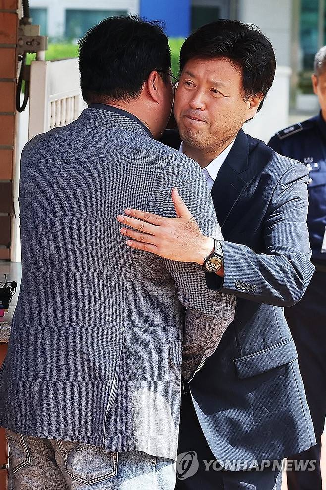 (화성=연합뉴스) 홍기원 기자 = 대장동 개발 민간업자 일당에게 금품을 받은 혐의로 항소심에서 실형을 선고받고 법정구속 된 김용 전 민주연구원 부원장이 20일 경기도 화성시 마도면 화성직업훈련교도소에서 보석으로 석방되고 있다. 2025.8.20