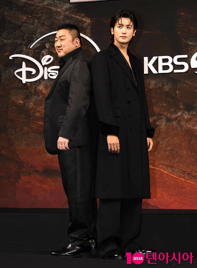 [텐아시아=조준원 기자]배우 마동석과 박형식이 20일 서울 중구 앰버서더 서울 풀만 호텔에서 열린 시리즈 <트웰브> 제작발표회에 참석해 포즈를 취하고 있다.