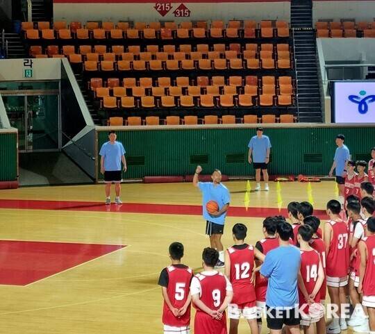 유소년 선수들이 빅맨 캠프에서 굵은 땀방울을 흘리고 있다.