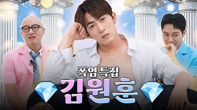 공개된 사진에는 '폭염 특집 김원훈'이라고 적힌 유튜브 예능 '홍석천의 보석함' 섬네일이 담겨 있으며, 치명적인 포즈를 취하고 있는 김원훈의 옆에서 좋지 않은 홍석천의 표정이 웃음을 자아낸다.