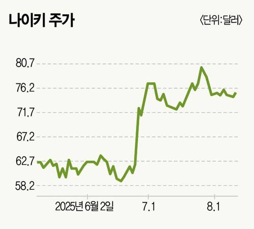 이 같은 기대감에 주가는 곧바로 반응했다. 실적 발표 다음 날인 6월 27일(현지 시간) 나이키 주가는 전일 대비 15% 상승했다. 6월 한 달간 50~60달러 사이를 오간 주가가 단숨에 70달러를 넘어섰다.