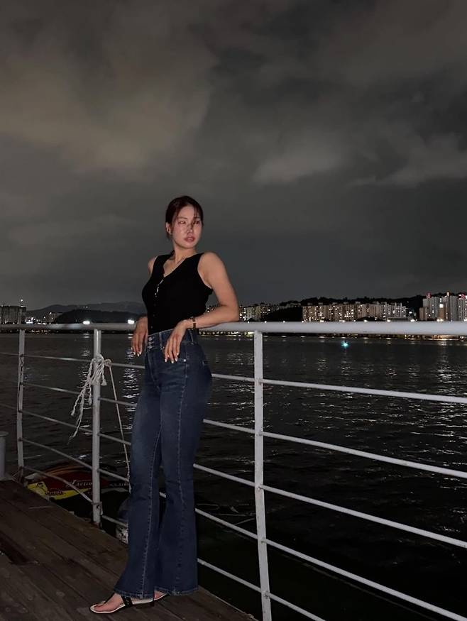 사진 속 유현주는 블랙 슬리브리스 톱과 다크 진을 매치해 단정하면서도 치명적인 룩을 선보였다. 바람에 흩날린 포니테일 헤어가 도시적인 매력을 더하고, 야경과 어우러지며 한층 더 돋보이는 아우라를 완성했다.