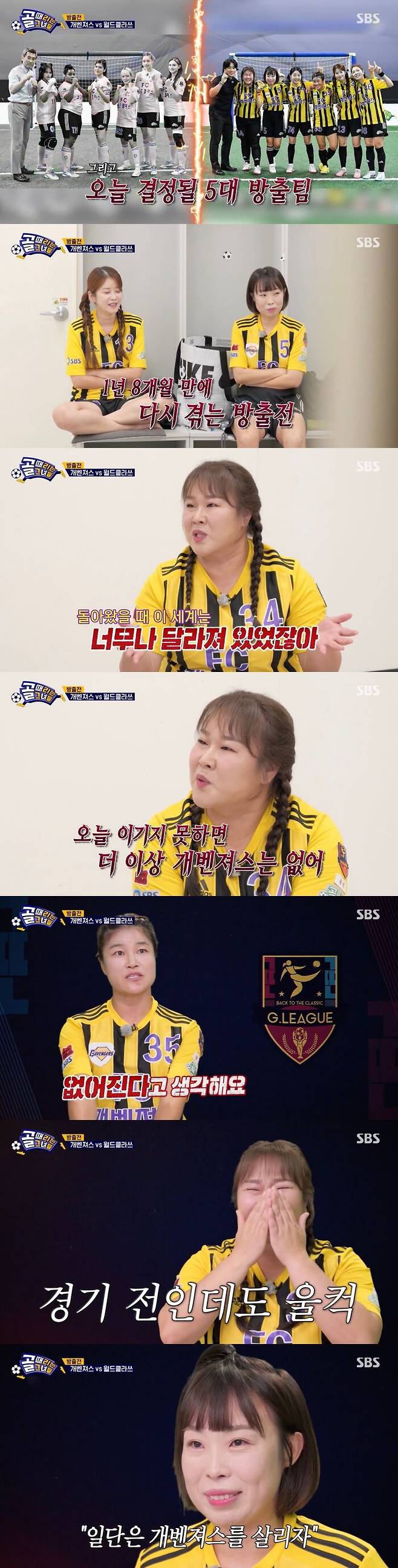 이날 경기를 앞두고 개벤져스는 "1년 8개월 만의 방출전"이라며 착잡한 얼굴을 했다. 이어 김민경은 "다시는 방출되지 않게 해 보자 했는데 돌아왔을 때 세계는 너무나 달라져 있었다"라고 높아진 리그의 벽을 언급했다.
