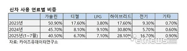 디젤 모델을 비롯한 내연기관차 수요 감소 속도는 해마다 빨라지고 있다. 카이즈유데이터연구소에 따르면, 2023년 전체 신차 판매량의 17.6%를 차지했던 디젤 모델 비중은 올해(1~7월 기준) 6.7%까지 하락했다. 가솔린 모델 비중 역시 2023년 50.9%에서 올해 40.5%까지 줄었다.