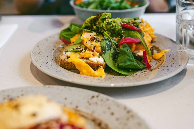 예약하는 걸 권장하는데, 가성비 좋은 식사를 원하면 아침을 추천하고, 화사한 분위기를 오롯이 느끼려면 점심을, 힙한 걸 추구한다면 저녁 시간대에 방문하면 된다. 공간이 그래서 그럴까. 직원들도 세련된 서비스와 옷차림으로 시선을 사로잡는다.