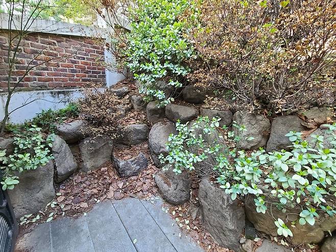 | ▲ A씨 소유 서울 강남구 청담동 소재 자택에 조성됐던 조경석. A씨는 조경석 15톤을 영동군에 기증했지만 현재 행방이 묘연하다. |