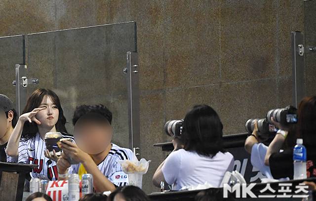 엔믹스 멤버 해원이 프로야구 시구에 나선 가운데 일부 팬들의 대포 카메라가 포착돼 눈길을 끌었다.